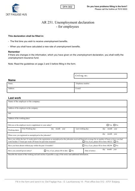 Ar 251 Unemployment Declaration For Employees Det Faglige Hus